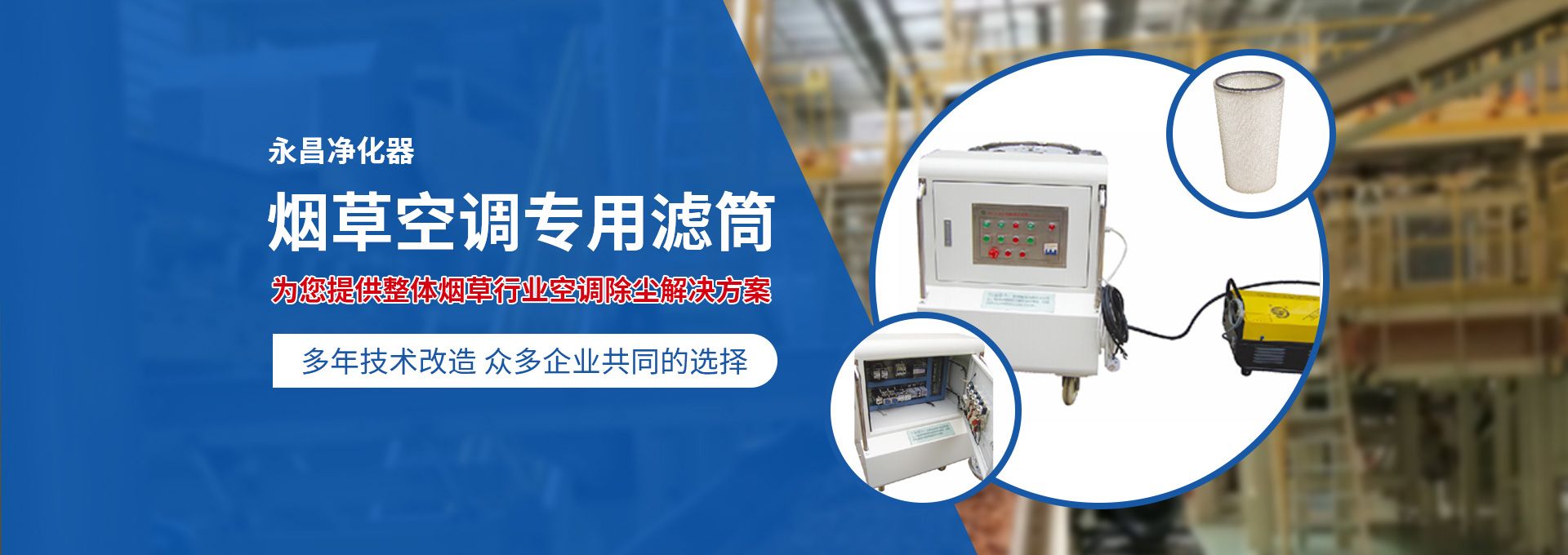 新鄉市永昌凈化器有限公司是生產煙草行業(yè)空調除塵專用濾筒的企業(yè)。注冊資金1000萬元。已通過ISO9001國際質量管理體系認證。對產品有嚴格的管理制度和售后服務。我公司以誠信、負責、守信譽、重質量的精神所生產的產品,近幾年來在煙草行業(yè)受到廣泛應用,并受到用戶的一致好評。 從一九九四年以來為煙廠的空調設備服務。十幾年來,我們不斷走出去請進來學習新技術。定期到用戶那里咨詢情況:互相交流,認真聽取寶貴意見,不斷提高產品質量。從經濟和安全,方便的角度出發(fā),根據煙廠濕度大的生產環(huán)境和濾筒收集到的含酸堿、氧化劑的粉塵。在空調箱工作狀態(tài)下我們頂著巨大的風壓危險在箱內停留了幾分鐘,認真查看濾筒工作情況,發(fā)現濾筒有并死狀態(tài),造成濾筒不過濾、不過風、壓差高的現象。經幾十次試驗分析,在標本兼治的原則下,有針對性的解決了這一問題?! ∥夜踞槍煆S制絲、卷接包、混絲間、儲絲房、冷卻床、梗膨化等不同的生產環(huán)境,